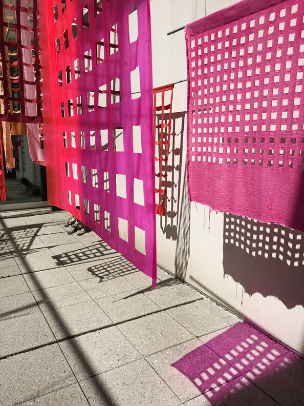 Curtains are designed to create a sense of privacy and protection. They are a device used to conceal or act as a barrier. My work disrupts the assumption of this traditional usage, specifically in my Uncurtain installation, where I intentionally create a space with uncertain boundaries.